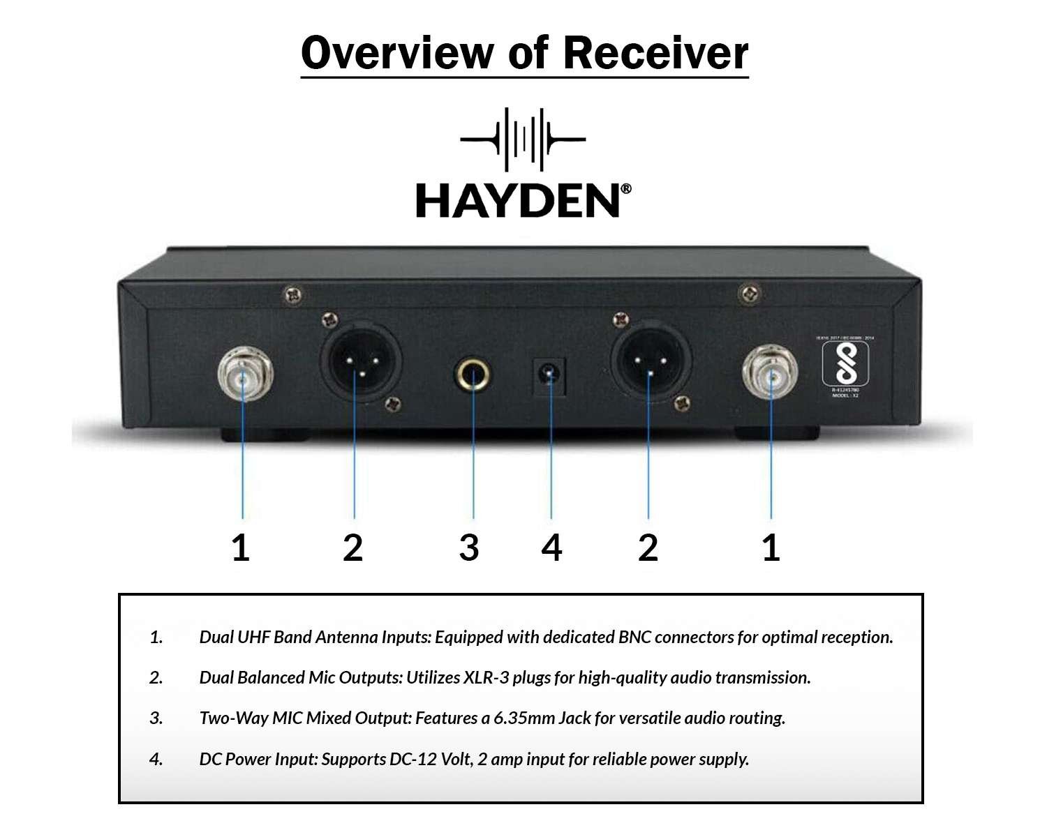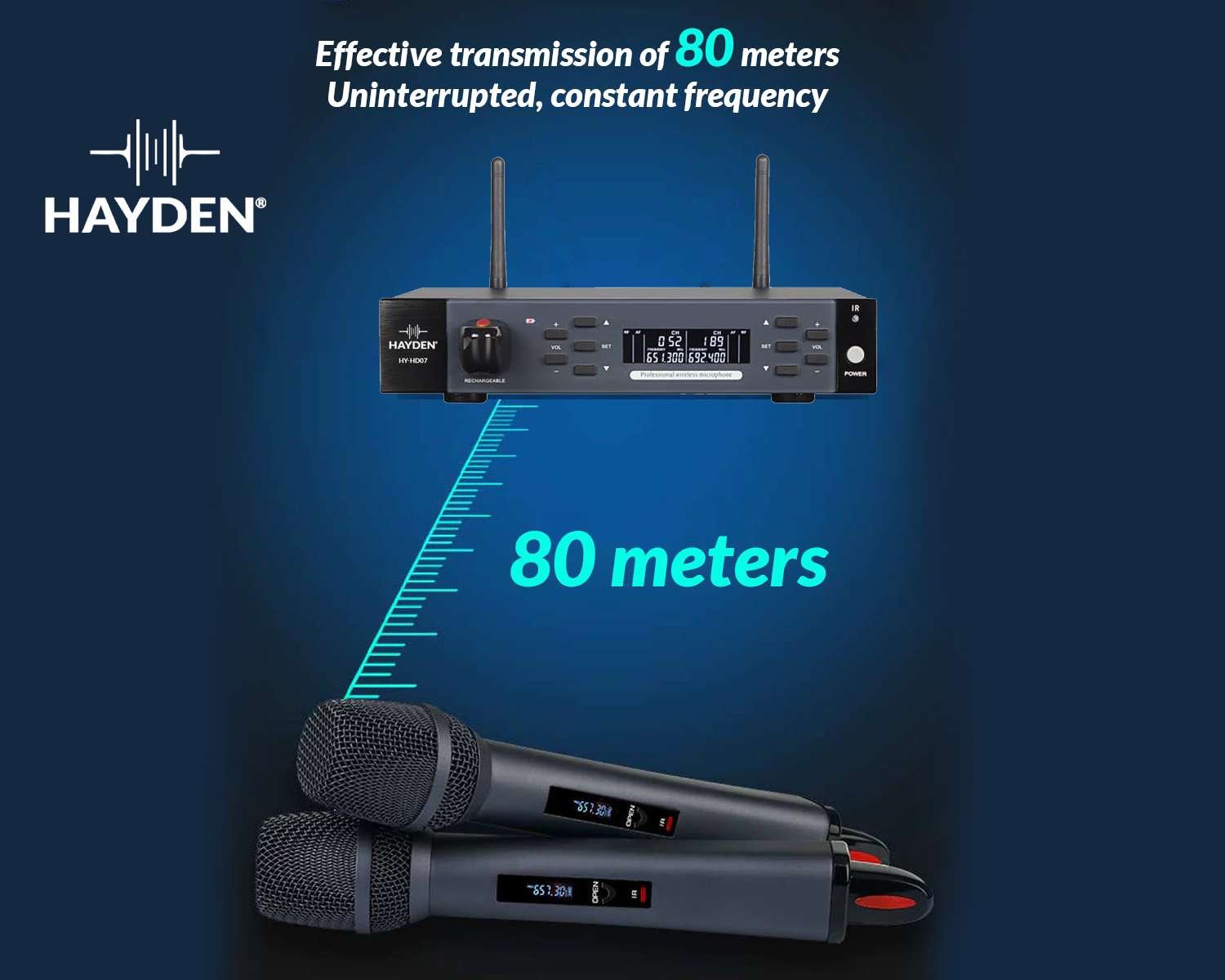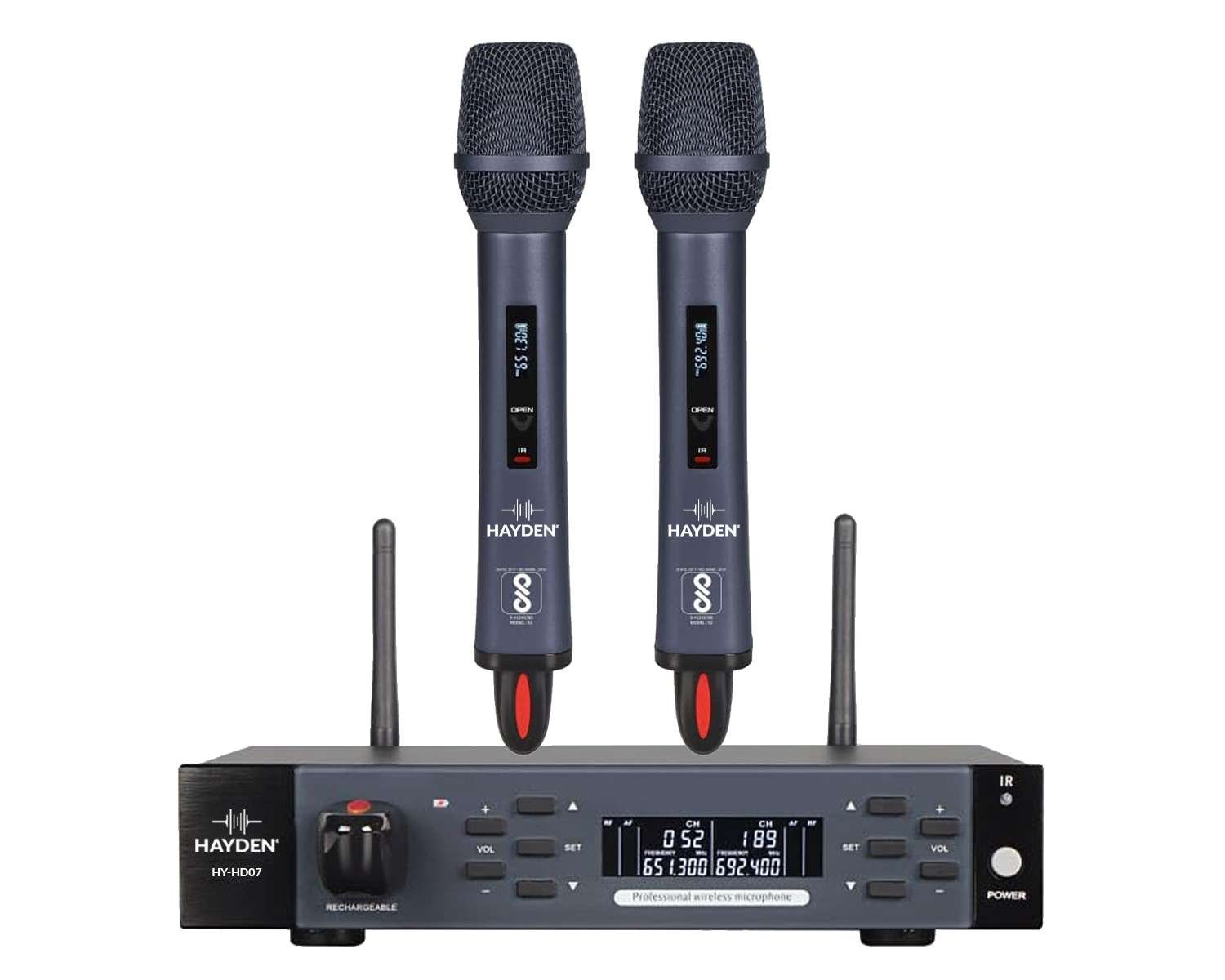 HAYDEN Professional Dual-Channel UHF Wireless Microphone System with Rechargeable Batteries – Karaoke Mic Set, Wireless Handheld Dynamic Microphones, Cordless Mic Kit